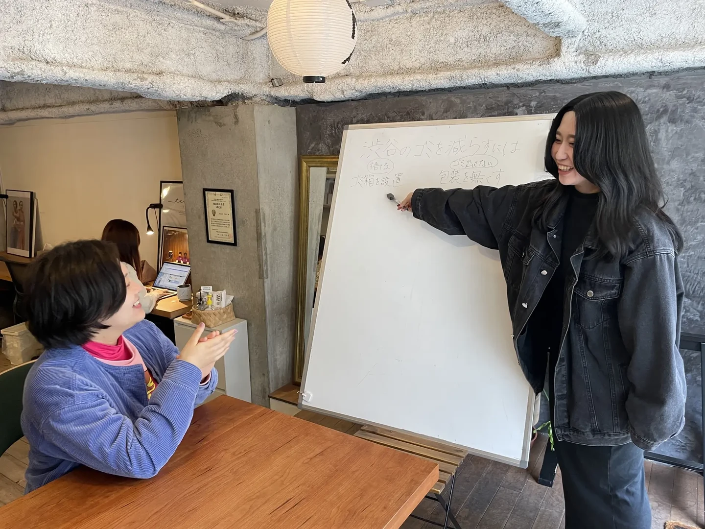 色々なテーマから企画を考え、なぜその企画を考えたのか新卒の二人で互いに質問をしあいながら企画のロジックを鍛えていくのが6W2Hの研修です!